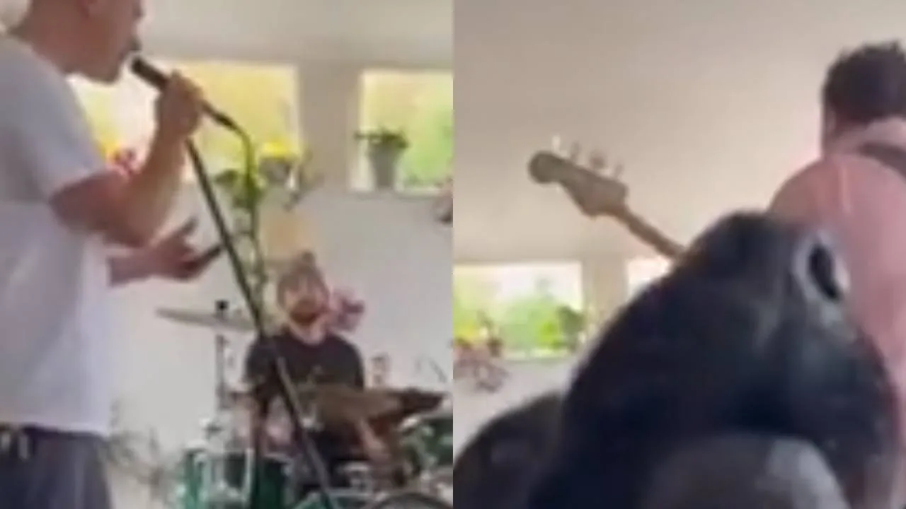 Любимые питомцы всегда поддержат владельца в любых его начинаниях, будь то пробежка по утрам, готовка или создание музыкальной группы, как случай из видео.