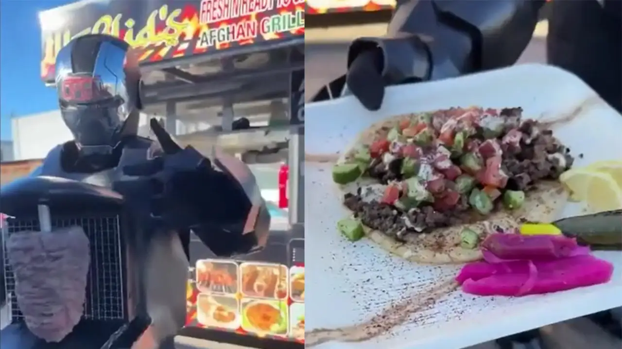 В Лос-Анджелесе приготовление шаурмы обрело супергеройский размах — одна из местных закусочных превратилась в гастрономическую крепость Железного человека. Повар, облаченный в подвижный костюм популярного супергероя, не просто жарит мясо — он делает это с технологическим шиком, ведь на его животе красуется вертел, вращающийся с точностью реактора Арк.