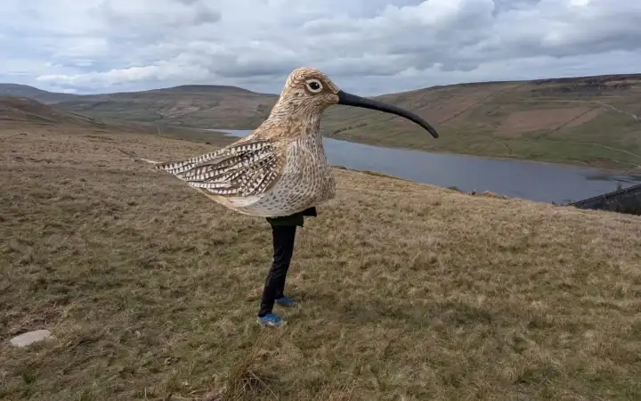Чтобы привлечь внимание к исчезающему виду птиц, сотрудник заповедника Nidderdale в Йоркшире Мэтт Тревельян прошел 85 километров в костюме большого кроншнепа. В прошлом он был кукольником и собрал костюм сам за три дня из расщепленного бамбука, муслина и полистирола, продумав даже обзорное отверстие в шее — чтобы видеть, куда идет.