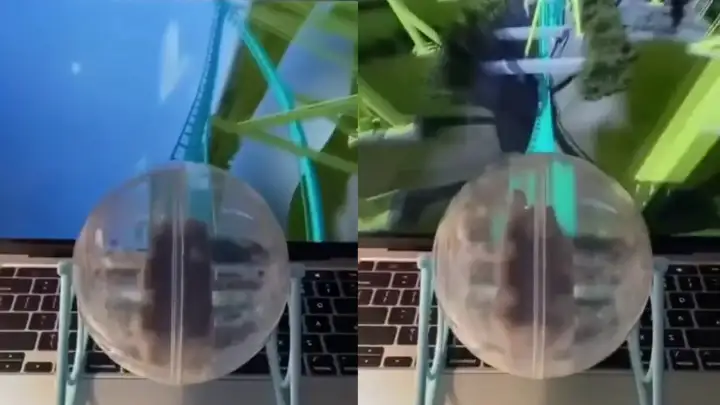 Досуг для грызуна: хозяин устроил своему бегающему в шаре хомяку 5D-кинотеатр Всем надо развлекаться.На видео сняли водные горки, чьи разработчики явно ненавидят людей Когда по образованию ты проектировщик, а по призванию — садист.«Страшна! Вырубай!»: хозяева организовали VR-аттракционы для своих пушистых Как развлечь питомцев, не выходя из дома.