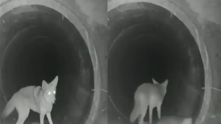 Койот ждет своего друга барсука, чтобы вместе пройти по туннелю Рядом с близким другом даже самая темная и узкая тропа перестает пугать.