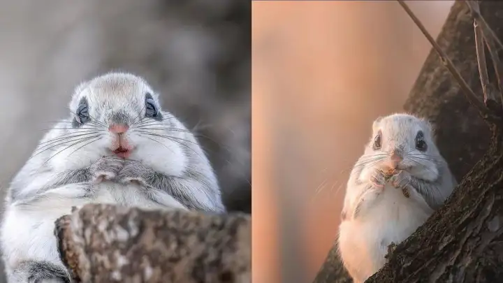 Милота: сибирская белка-летяга вышла из дупла и устроила перекус на камеру