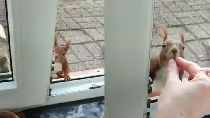 Милые гости: девушка сняла на видео, как ее навещают белочка, чтобы покрепиться