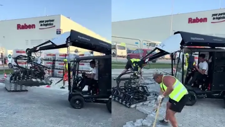 Инновационный способ укладывания брусчатки поражает своей скоростью