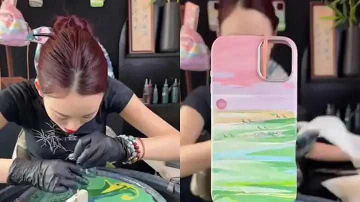 Магия: девушка нарисовала картину на чехле для телефона техникой аквапринт