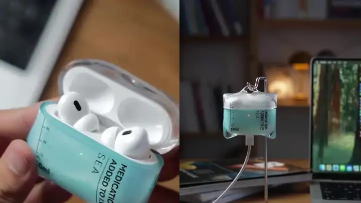 В Сети млеют от чехла для Airpods в виде капельницы с реальной жидкостью внутри