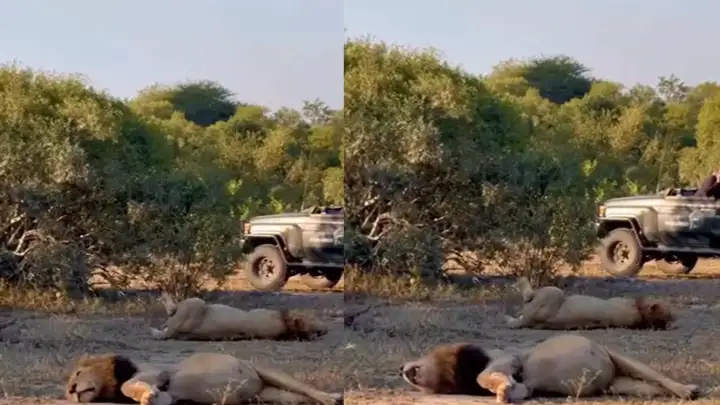 «Десерт!»: на видео попали львы, которые так наелись, что не могут встать