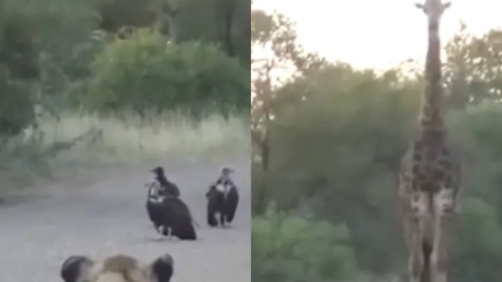 Застрявшие на дороге львы, грифы, гиена и жираф уморили соцсети