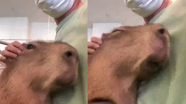Капибара получила долгожданные обнимашки и была очень довольна собой