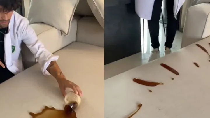 Девушка доверила выбрать диван своему парню, и вот, что из этого вышло Хочешь сделать хорошо — сделай сам.В Сети показали водостойкое покрытие дивана, работа которого завораживает Залипательно.