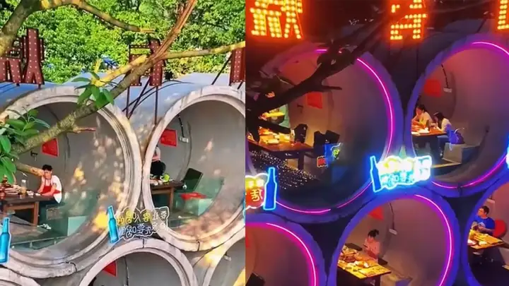 В Азии есть кафе, построенное из огромных бетонных колец для канализации