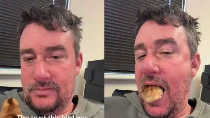 Цыпленок залез в рот к своему хозяину и показал, насколько он ему доверяет Доверительные отношения.Вкусное невидимое: бессовестный хозяин подло обманул кота сосиской, которой нет Когда безоговорочно веришь своему человеку.