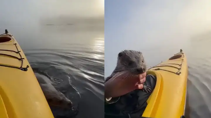 Мужчина спас и выходил выдру, и теперь они регулярно видятся на озере