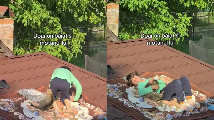 Мальчик устроил уютное место для отдыха с котиком прямо на крыше и умилил Сеть