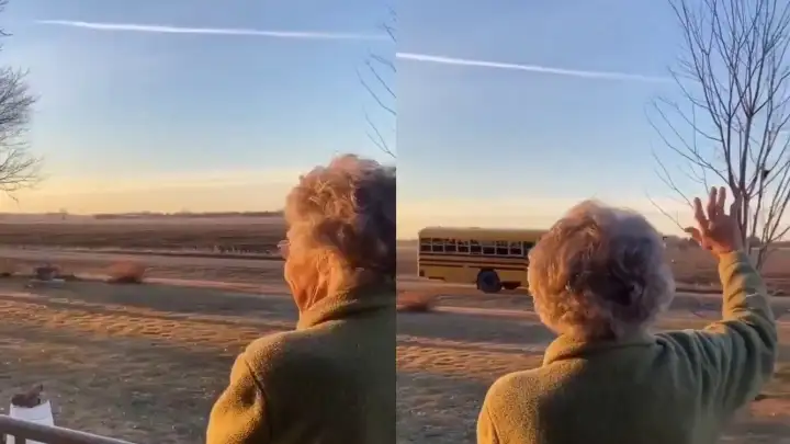 Дети поздравили бабулю, которая каждое утро приветствует их по пути в школу