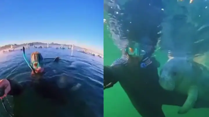 «Теперь ты мой»: ламантину так понравился дайвер, что он отказался его отпускать