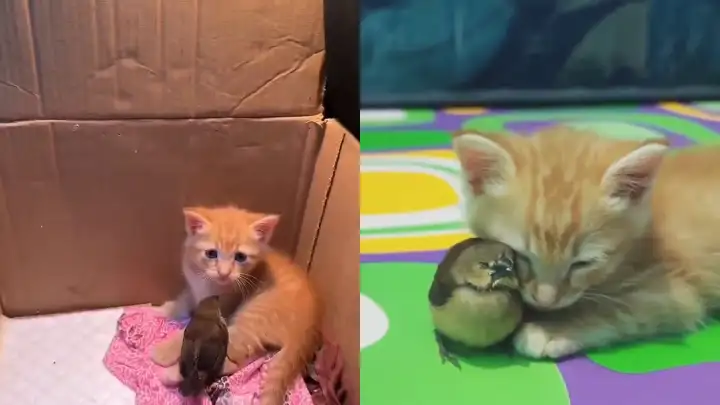 Ничего милее вы сегодня уже не увидите: на видео сняли дружбу котенка и птички