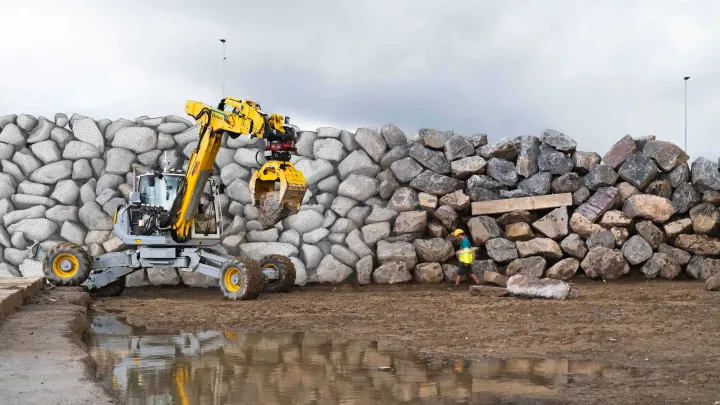 Робот-экскаватор построил каменную стену без участия человека Машина оснащена системой GNSS и датчиками LiDAR.