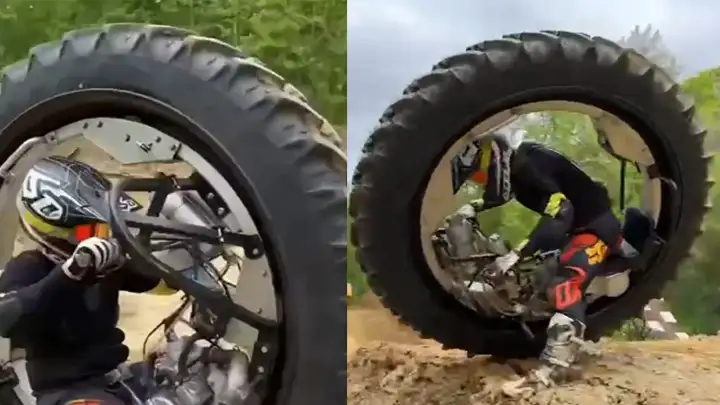 Экстремал соорудил моноколесо, в котором можно ехать и вращаться одновременно