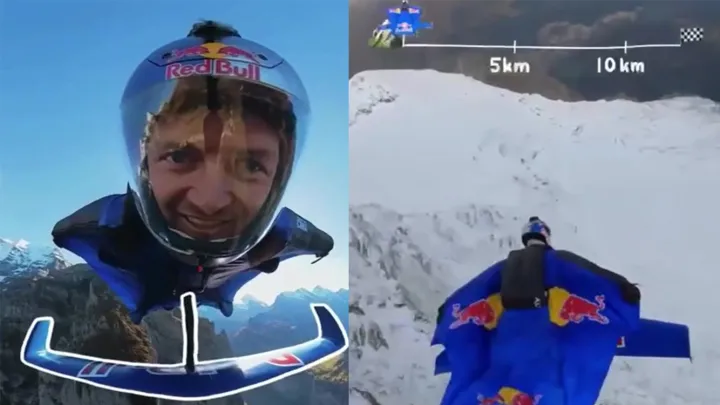 Спортсмен установил сразу три мировых рекорда за один полет на вингсьюте