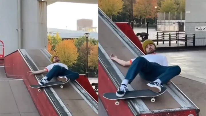 Скейтбордист доказал, что даже экстремальные трюки можно выполнять лениво