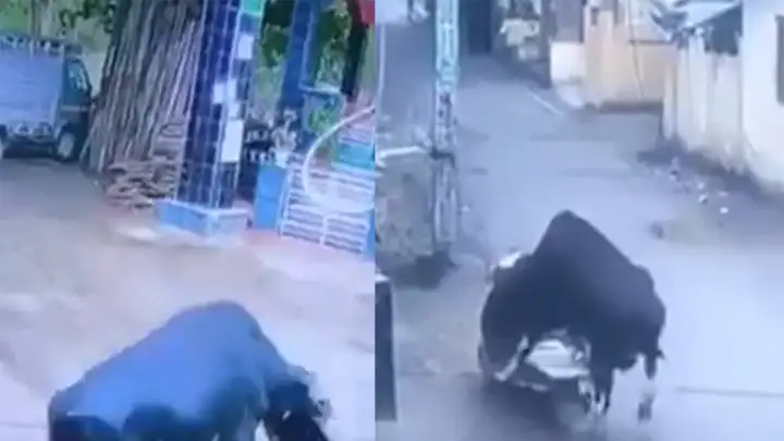 Поехал на дачу: в Индии бык угнал мопед и прокатился на нем по улице