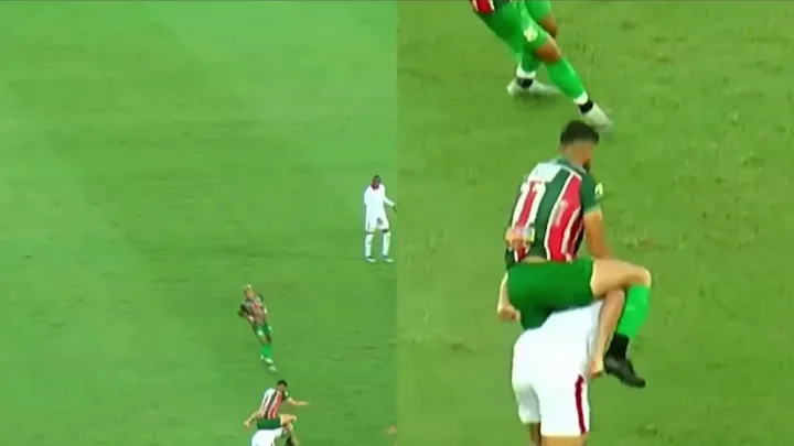 Футболист случайно оседлал своего противника во время матча и уморил болельщиков