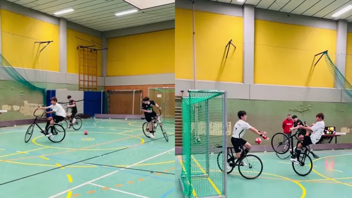 Ребята сыграли в футбол на велосипедах, дав фору обычным футболистам