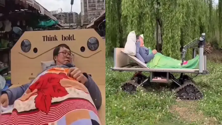 Лень окончательно победила: житель Китая превратил кровать в вездеход