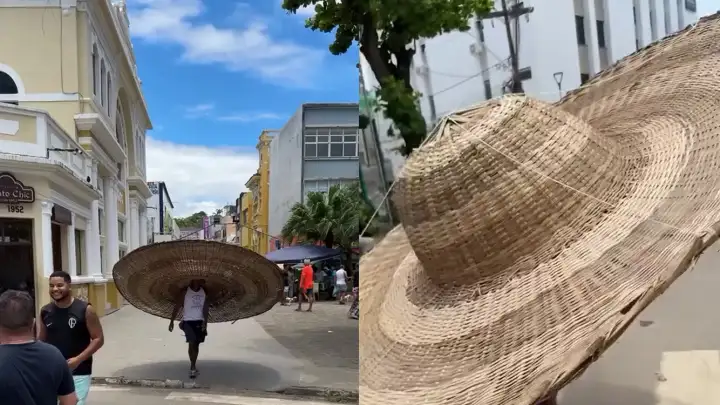 Максимальная защита от солнца: на видео сняли шляпу размером с уличный зонт