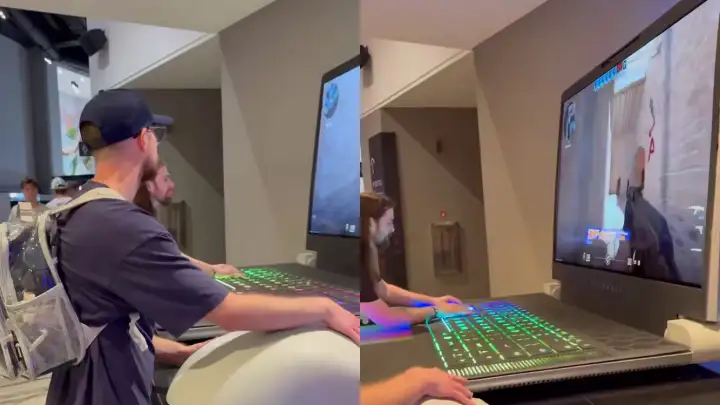 На видео сняли гигантский ноутбук, в который получается играть только в паре