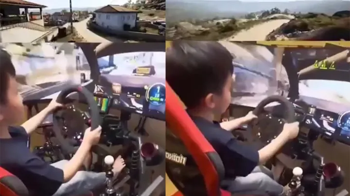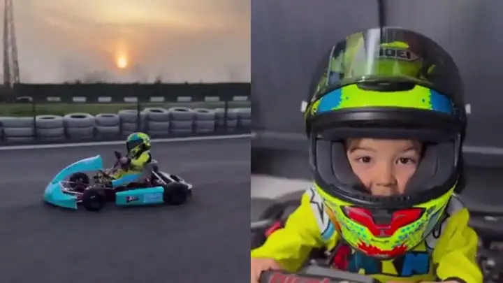 Малыш показал свое мастерство вождения мини-болида на гоночной трассе