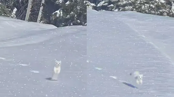 Крохотулечный прыг: прыгающий по снегу горностай напоминает персонажа мультика Будто маленькая анимешка.