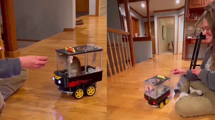 Капибара нахально подвинула крокодила и была очень довольна собой Крокодил отреагировал на эту беспардонность удивительно спокойно.Пара приютила двух крыс и научила их водить созданные для них мини-автомобили Очень умные грызуны.