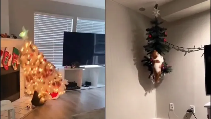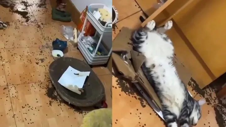 Скоро во всех домах с котами: в Сети смеются над подборкой пушистых с елками Пушистые новогодние балбесы.Набедокурил и спит: кот разбросал корм по всему жилищу и спокойно уснул Пушистый балбес.