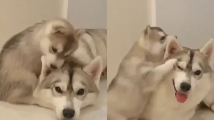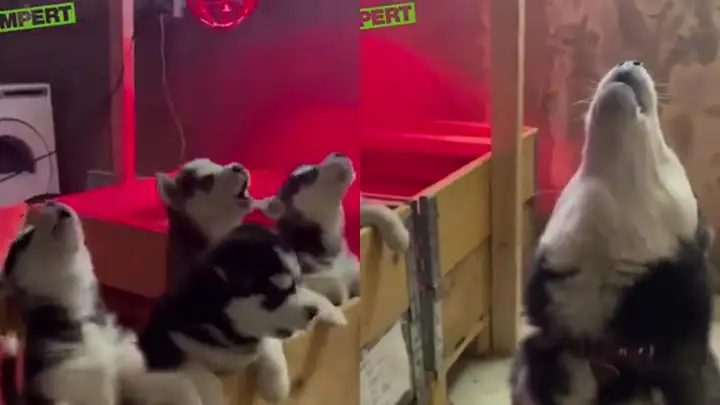 На видео попал очаровательный урок по вокалу от мамы-хаски своим щенятам