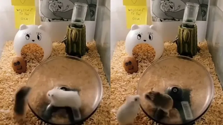 Хомяк отвоевал колесо и показал, как достичь успеха, если не оставлять попыток Целеустремленный грызун.
