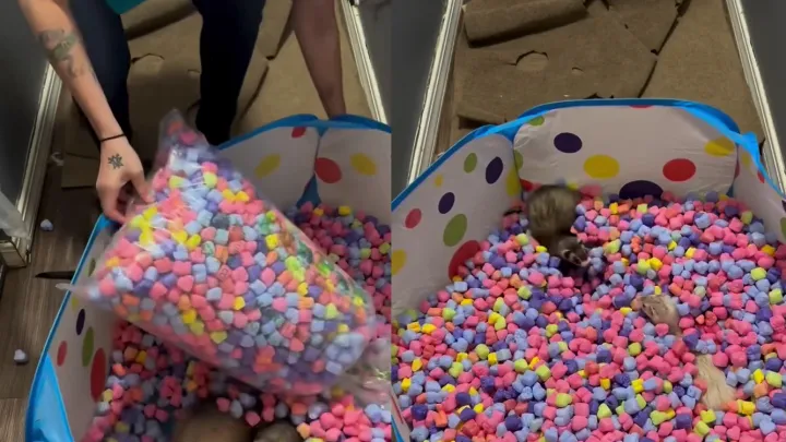 Счастливые сосиски: на видео попала реакция хорьков на сухой бассейн