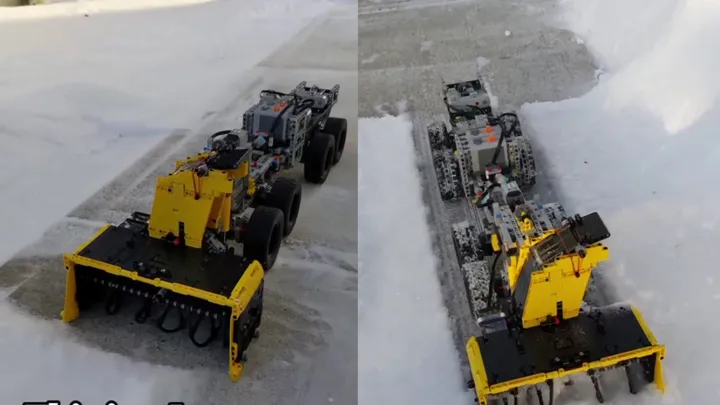 На видео сняли снегоуборочную машину из LEGO, способную очистить дорожку от снега