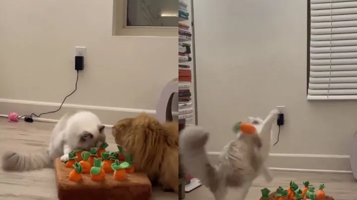 На видео сняли кота, который не выносит разлуки со своим игрушечным котиком