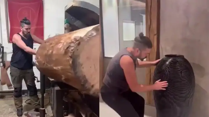 Немецкий плотник Бенджамин Планицер делает вазы из огромных бревен