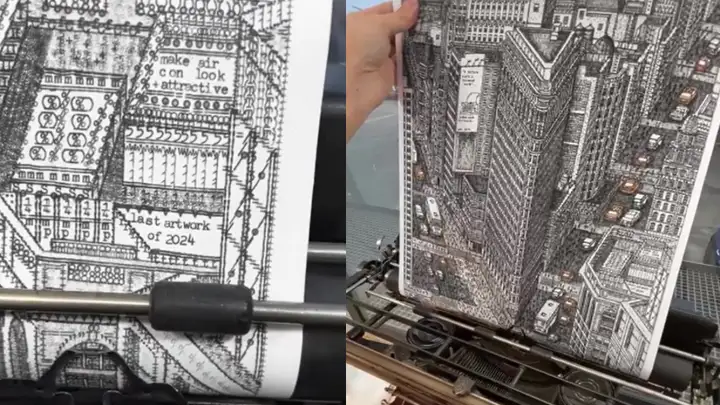 Художник Джеймс Кук рисует картины с помощью печатной машинки