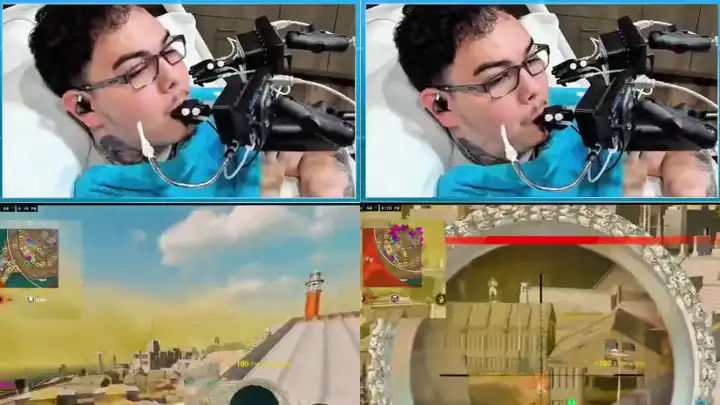 Парализованный парень играет в видеоигры, используя только движения рта и головы