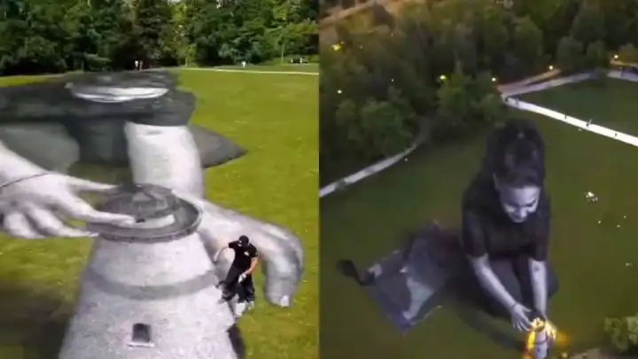 На видео сняли создание картин, буквально и фигурально выходящих за рамки