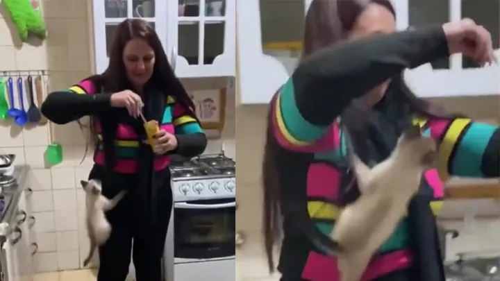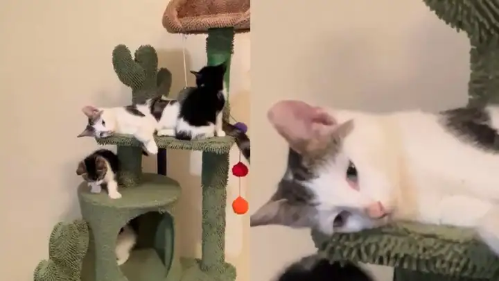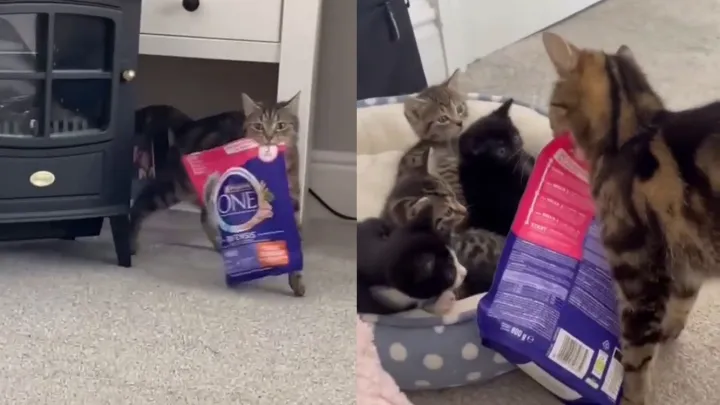 На видео сняли довод, что быть кошачьей мамой не менее тяжело, чем человеческой