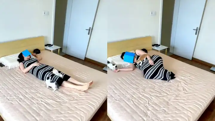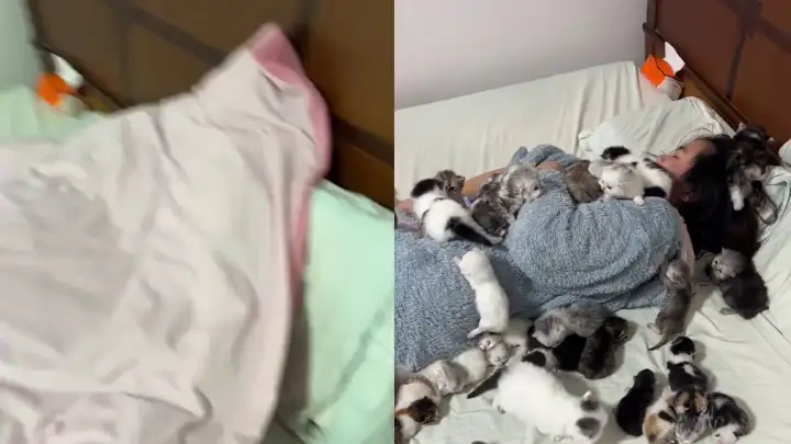 Вскрыли тайник: на видео сняли котят, которые облепили свою спящую хозяйку
