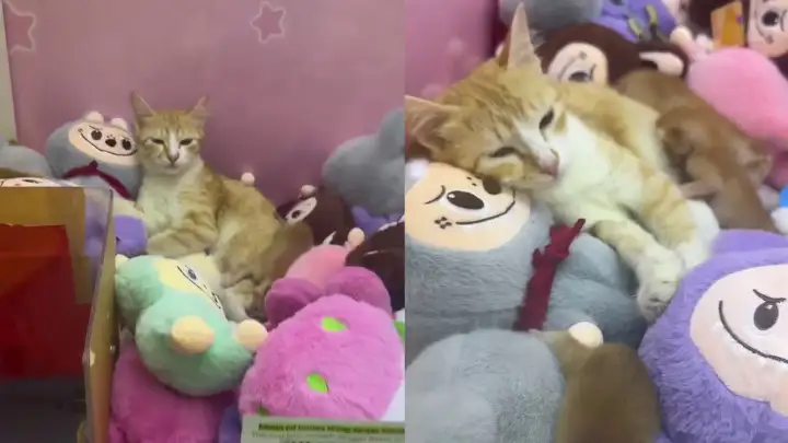 Кошка с котятами обеспечили себя VIP-жильем, забравшись в автомат с игрушками