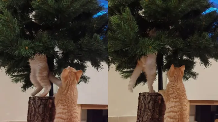 На видео сняли, как пушистые техники проверяют устойчивость хвойной конструкции