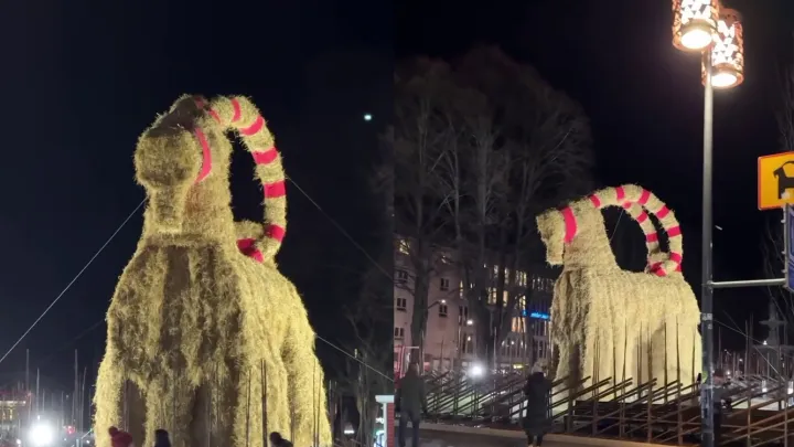 В шведском городе Евле в 58-й раз был установлен рождественский козел из соломы История этого козла полна приключений.