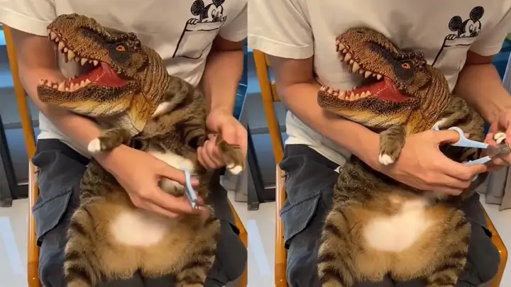 Котозавр: на видео попал лучший способ безопасно подстричь кошачьи когти